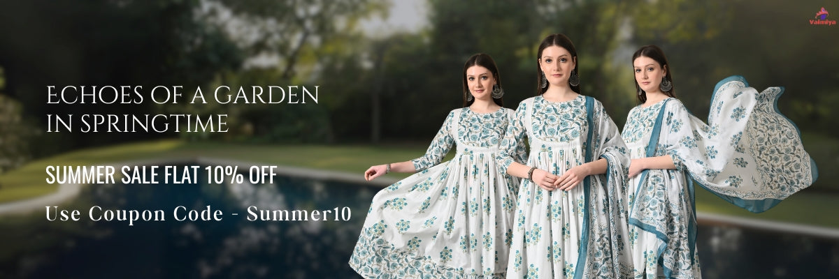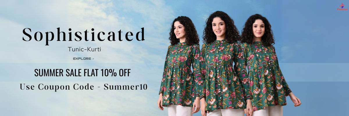 Vaimiya Printed V-Neck Pure Cotton Tunic With Trouser